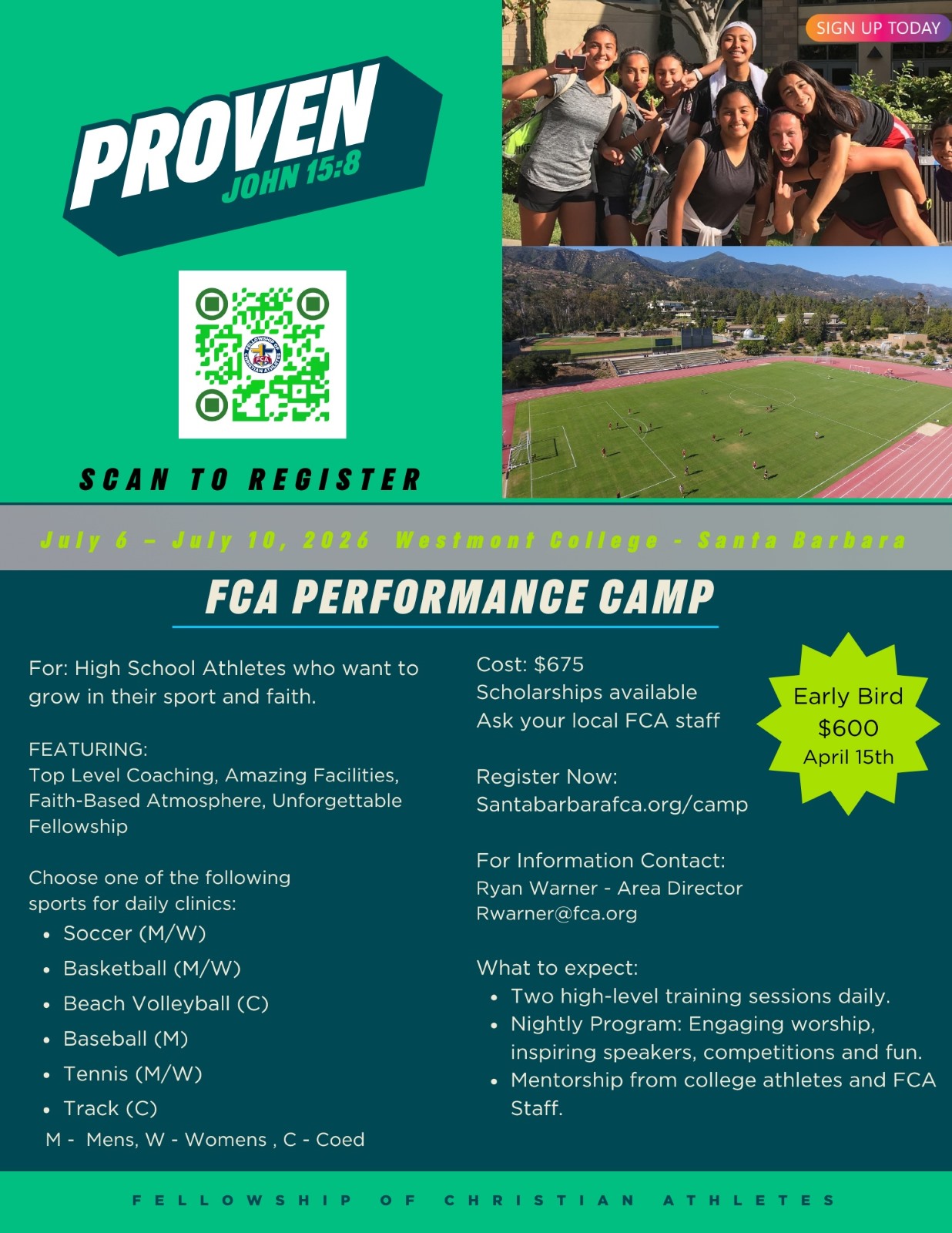 - Mentorship from college athletes and FCA staff.